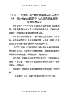 “十四五”时期经济社会发展实践与启示述评01:坚持党的全面领导,为实现高质量发展提供根本保证.docx