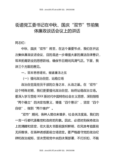 2025街道党工委书记在中秋、国庆“双节”节前集体廉政谈话会议上的讲话