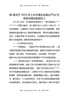 镇党委关于2025年上半年落实全面从严治党主体责任情况的报告.docx