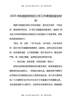 2025年拟提拔领导近三年工作表现的鉴定材料.docx