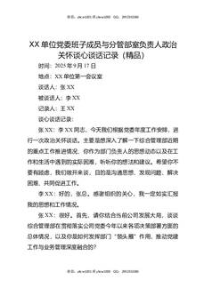 XX单位党委班子成员与分管部室负责人政治关怀谈心谈话记录(精品).docx