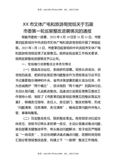 XX市文体广电和旅游局党组关于五届市委第一轮巡察整改进展情况的通报.docx