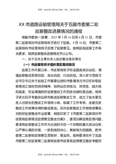 XX市道路运输管理局关于五届市委第二轮巡察整改进展情况的通报.docx