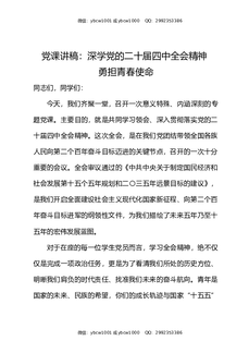 党课讲稿:深学党的二十届四中全会精神,勇担青春使命.docx