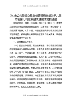 XX市公共资源交易监督管理局党组关于九届市委第七轮巡察整改进展情况的通报.docx