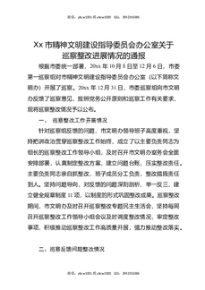 XX市精神文明建设指导委员会办公室关于巡察整改进展情况的通报.docx