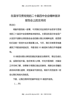 在县学习贯彻党的二十届四中全会精神宣讲报告会上的主持词.docx