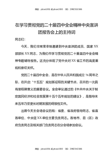 在学习贯彻党的二十届四中全会精神中央宣讲团报告会上的主持词.docx
