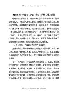 2025年领导干部党校学习党性分析材料.docx