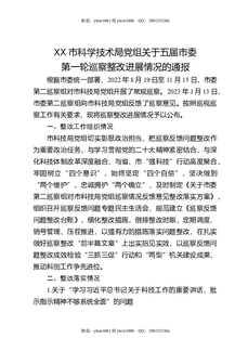 XX市科学技术局党组关于五届市委第一轮巡察整改进展情况的通报.docx