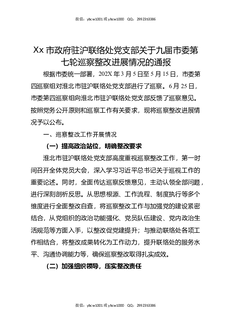XX市政府驻沪联络处党支部关于九届市委第七轮巡察整改进展情况的通报.docx