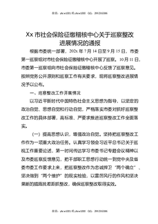 XX市社会保险征缴稽核中心关于巡察整改进展情况的通报.docx