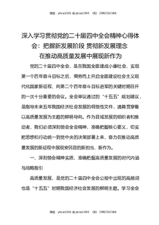 深入学习贯彻党的二十届四中全会精神心得体会:把握新发展阶段贯彻新发展理念在推动高质量发展中展现新作为.docx