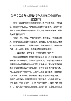 关于2025年拟提拔领导近三年工作表现的鉴定材料.docx