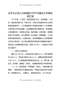 关于分公司人力资源部2025年重点工作情况的汇报.docx