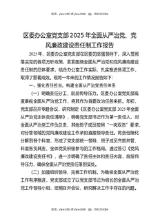 区委办公室党支部2025年全面从严治党、党风廉政建设责任制工作报告.docx