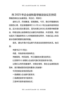 市2025年企业金秋助学座谈会议主持词.docx