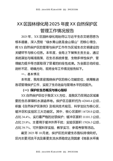 XX区园林绿化局2025年度XX自然保护区管理工作情况报告.docx