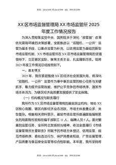 XX区市场监督管理局XX市场监管所2025年度工作情况报告.docx