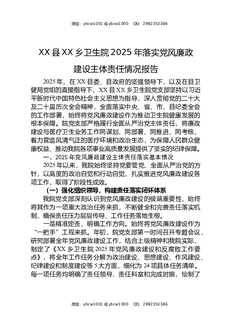 XX县XX乡卫生院2025年落实党风廉政建设主体责任情况报告.docx