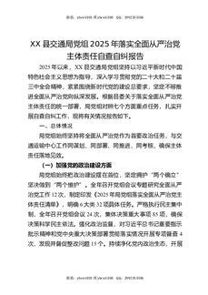 XX县交通局党组2025年落实全面从严治党主体责任自查自纠报告.docx