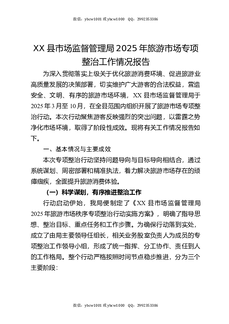 XX县市场监督管理局2025年旅游市场专项整治工作情况报告.docx