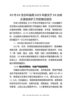 XX市XX生态环境局2025年度关于XX水库水源地保护工作的情况报告.docx