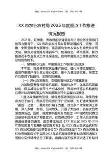 XX市农业农村局2025年度重点工作推进情况报告.docx