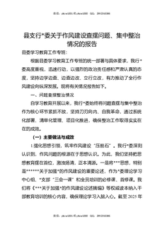 县支行关于作风建设查摆问题、集中整治情况的报告.docx