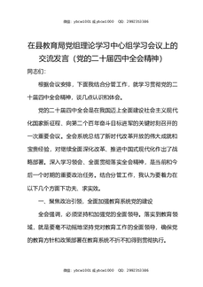 在县教育局党组理论学习中心组学习会议上的交流发言党的二十届四中全会精神.docx