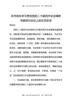 在市政协学习贯彻党的二十届四中全会精神专题研讨会议上的交流发言.docx