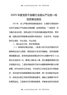 2025年度党员干部履行全面从严治党一岗双责情况报告.docx