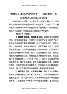 XX市民政局党组关于五届市委第一轮巡察整改进展情况的通报.docx