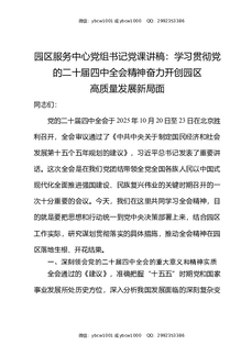 园区服务中心党组书记党课讲稿学习贯彻党的二十届四中全会精神奋力开创园区高质量发展新局面.docx