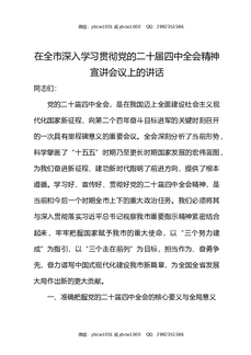 在全市深入学习贯彻党的二十届四中全会精神宣讲会议上的讲话.docx