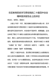 在区教育系统学习贯彻党的二十届四中全会精神宣讲报告会上的讲话.docx