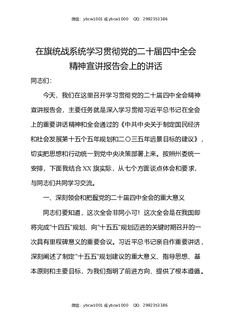 在旗统战系统学习贯彻党的二十届四中全会精神宣讲报告会上的讲话.docx