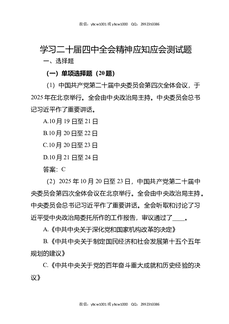 学习党的二十届四中全会精神应知应会知识测试题.doc