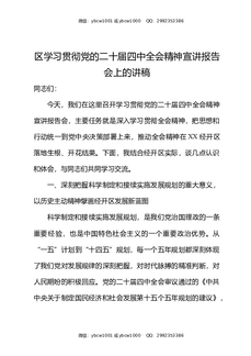区学习贯彻党的二十届四中全会精神宣讲报告会上的讲稿.docx