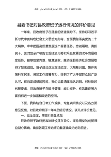 县委书记对县政府班子运行情况的评价意见.docx