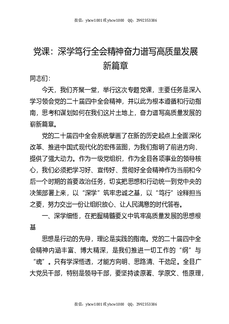 四中全会党课:深学笃行全会精神奋力谱写高质量发展新篇章.docx