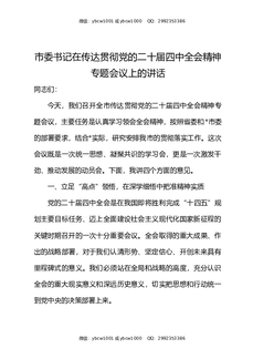 市委书记在传达贯彻党的二十届四中全会精神专题会议上的讲话.docx