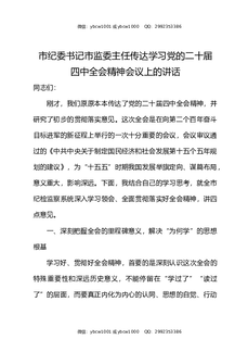 市纪委书记市监委主任传达学习党的二十届四中全会精神会议上的讲话.docx