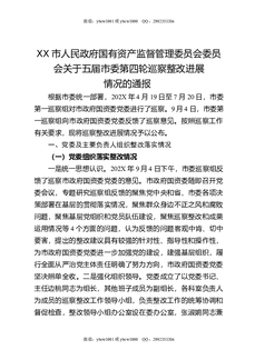 XX市人民政府国有资产监督管理委员会委员会关于五届市委第四轮巡察整改进展情况的通报.docx