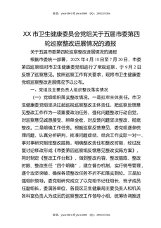 XX市卫生健康委员会党组关于五届市委第四轮巡察整改进展情况的通报.docx