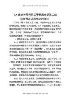 XX市商务局党组关于五届市委第二轮巡察整改进展情况的通报.docx