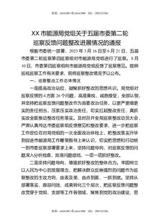 XX市能源局党组关于五届市委第二轮巡察反馈问题整改进展情况的通报.docx