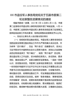 XX市退役军人事务局党组关于五届市委第二轮巡察整改进展情况的通报.docx