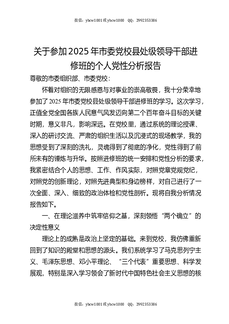 关于参加2025年市委党校县处级领导干部进修班的个人党性分析报告.docx