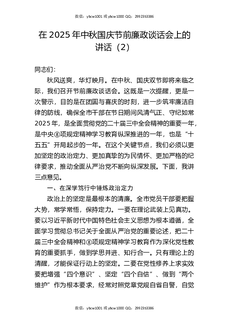 在2025年中秋国庆节前廉政谈话会上的讲话(2)